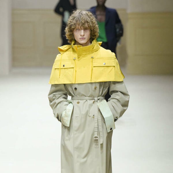 The duo’s solution, she explained, was to celebrate beauty, and innovate sustainably. And to look for what’s essential. Like Prada’s fantastic new cardinal’s ecclesiastical cappa, finished with multi pockets. Made in bright green or yellow cotton, and worn over trench coats, they looked subtle yet revolutionary.