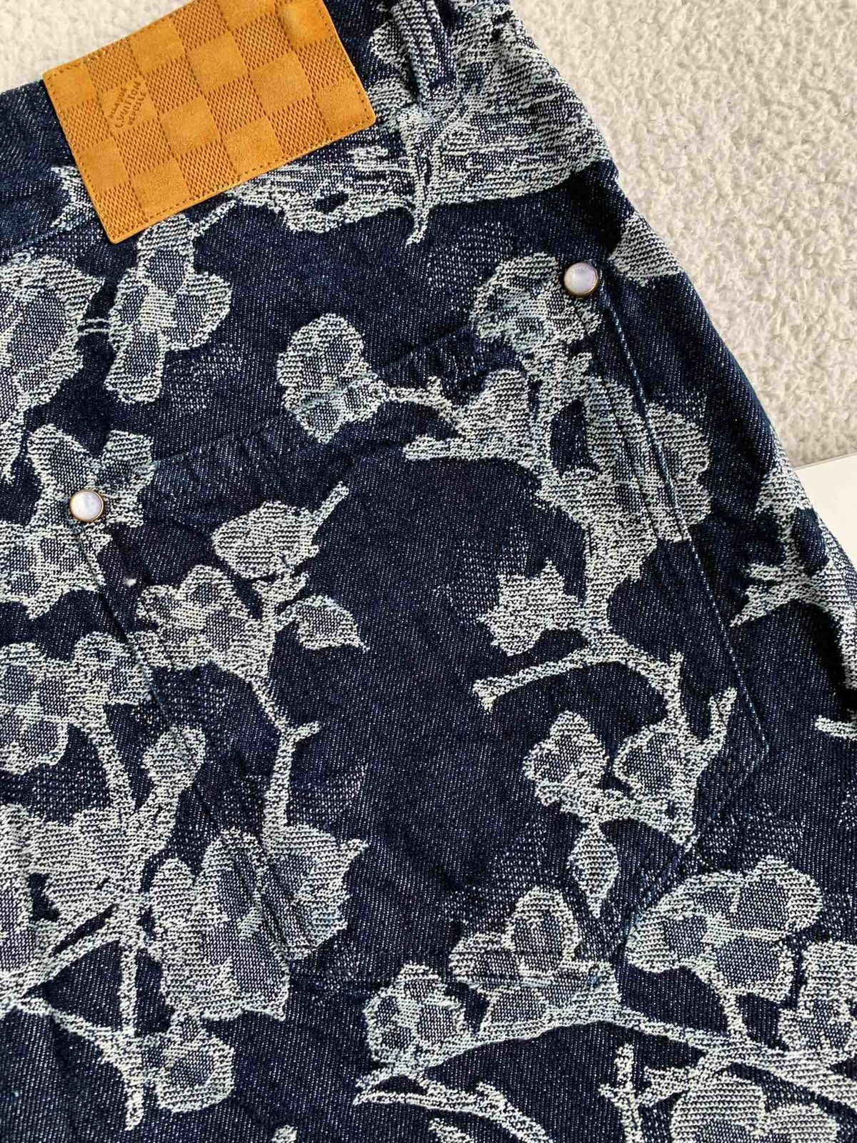 These Louis Vuitton denim shorts feature exquisite FLORAL JACQUARD with woven LV MONOGRAM! The ultimate blend of casual comfort and high-fashion elegance! ☀️