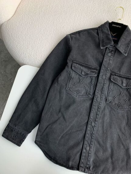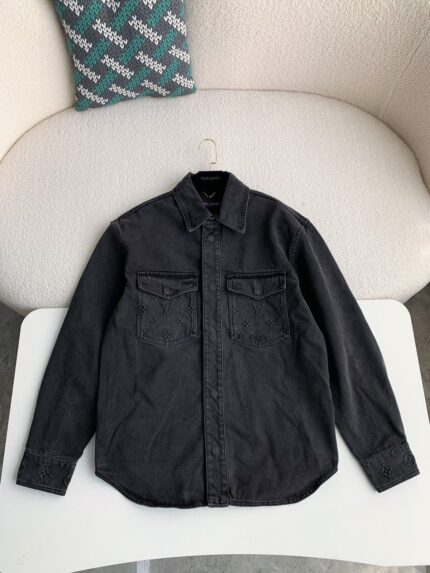 Louis Vuitton Monogram Embossed Black Denim Shirt – Luxury Casual Wear