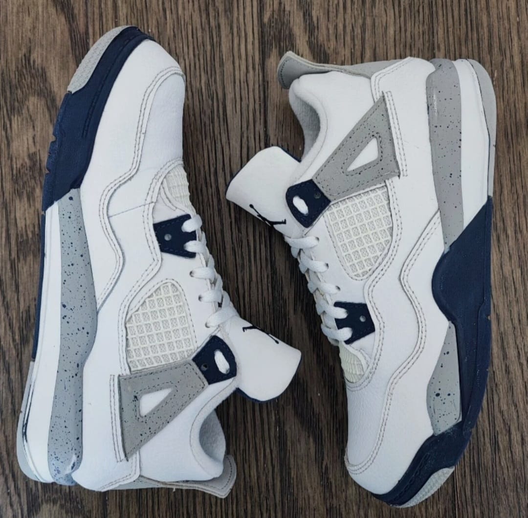 Step up your style with the Air Jordan 4 Retro Sneakers 👟. Featuring a premium leather upper, iconic mesh panels, and the timeless White & Midnight Navy colorway, these sneakers deliver exclusivity, comfort, and luxury streetwear vibes. Available in US sizes 7–14 (adults only).